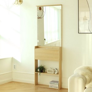 슬림한 오크 디자인으로 공간 활용이 뛰어나며, 거울과 수납 기능이 포함되어 실용적으로 사용할 수 있는 화장대입니다.