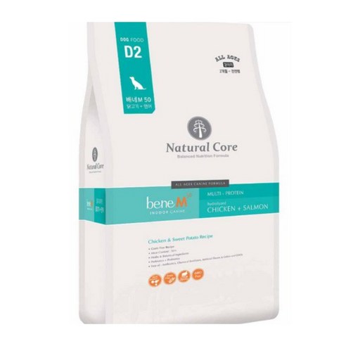 네츄럴코어 베네 M50 큰알갱이 10kg은 닭고기와 연어를 기본으로 단백질을 충분히 담아 만든 전연령용 건식 반려견 사료로, 가수분해 단백질로 소화가 잘 되고 장 건강과 면역 기능 지원 성분이 들어 있어 균형 잡힌 영양을 제공합니다.