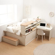 - 책상, 책장, 선반, 파티션이 결합된 올인원 학생침대 프레임